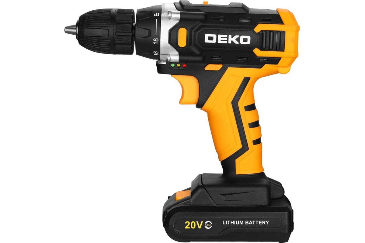 Аккумуляторная дрель-шуруповерт DEKO Banger 20V ONE+, 1x2.0Ah предназначена для строительных, слесарно-монтажных работ. Инструмент помогает быстро высверливать отверстия нужного диаметра как на деревянной, так и металлической поверхности, быстро вкручивать или извлекать крепеж.