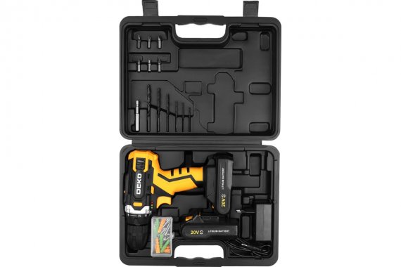 Deko 083-1043 Аккумуляторная дрель-шуруповерт 63 инструмента для дома, 20В