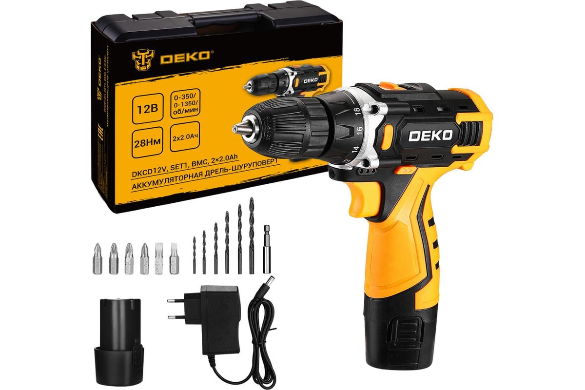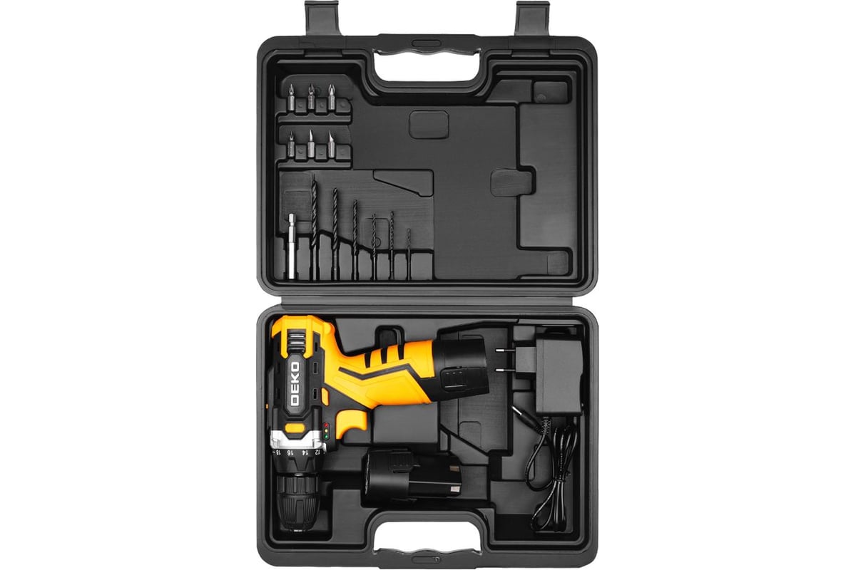 Аккумуляторная дрель-шуруповерт DEKO DKCD12V SET1 в кейсе + оснастка 13 шт, 2*2,0 А·ч