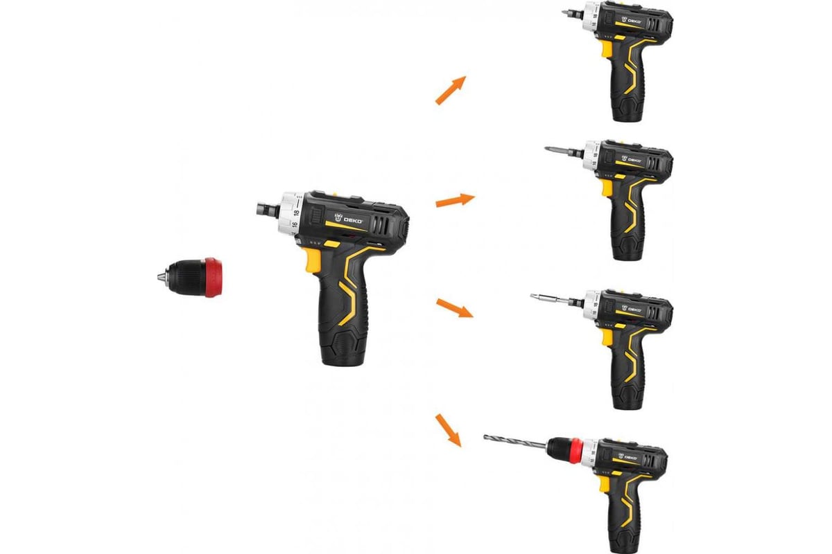 Аккумуляторная дрель-шуруповерт DEKO GCD12DU3 Li-Ion со съемным патроном, 1*2 Ач