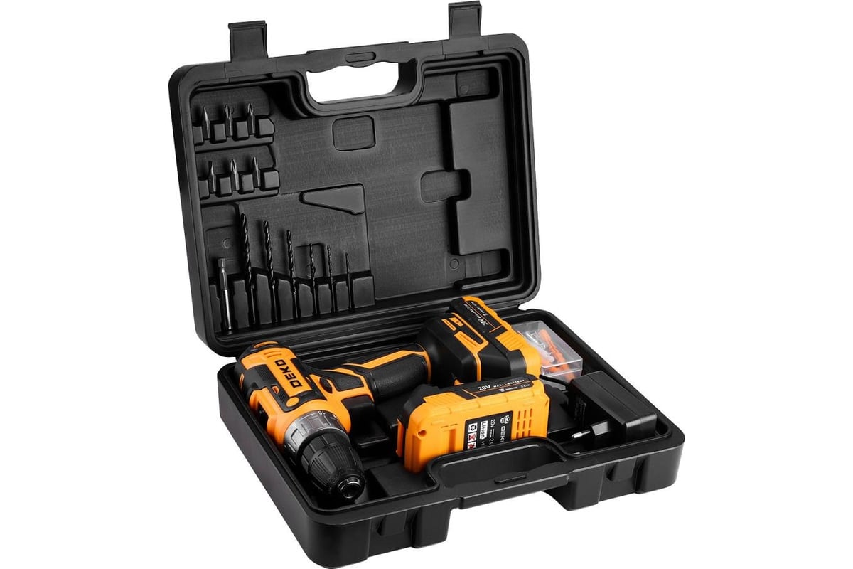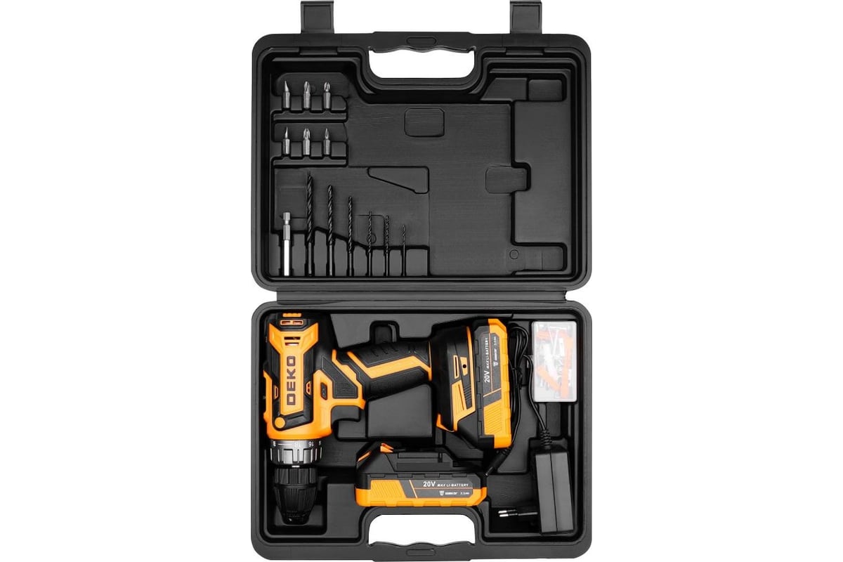 Аккумуляторная дрель-шуруповерт DEKO GCD20DU PRO в кейсе + набор 63 инструмента для дома, 20В, 2х3.0