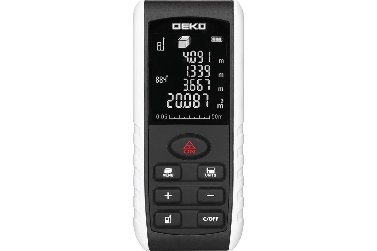 Дальномер лазерный c функцией измерения угла DEKO R-LDI50 предназначен для проведения точных измерительных работ (измерению расстояния, площади и объема).