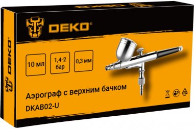 Аэрограф c верхним бачком DEKO DKAB02-U Объем бачка: 10 мл; Рабочее давление: 1.4-2 Бар