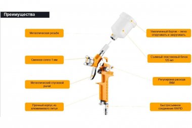 Deko 018-0929 Краскопульт пневматический с верхним бачком DKSG125P HVLP