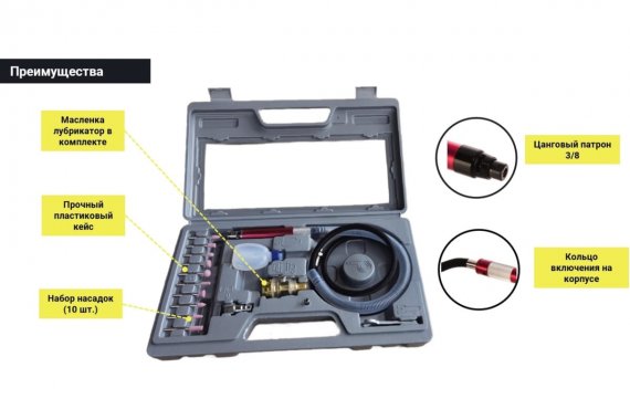Гравер с цангой 1//8” и шлангом - 1 шт
