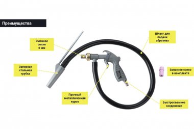 Пистолет пескоструйный Zitrek ZSBG01 Габариты без упаковки 347х40х267 мм Рабочее давление: 5-10 Бар