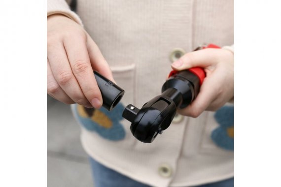 В комплект входят головки разного размера, что расширяет сферу применения трещотки