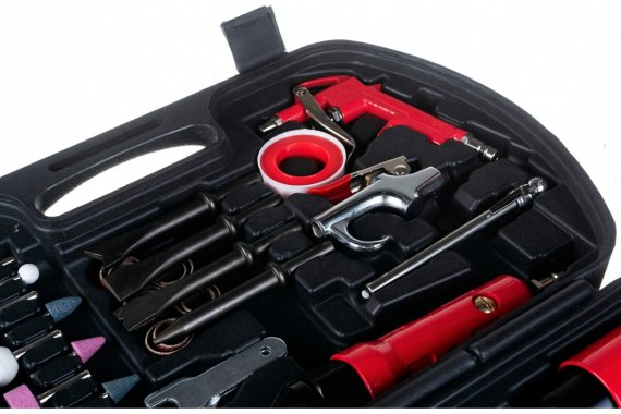 Набор пневмоинструмента и аксессуаров DEKO DKPT61 Premium 61 предмет в чемодане (Прямая пневмошлифмашина, пневмотрещотка Давление 6 атм