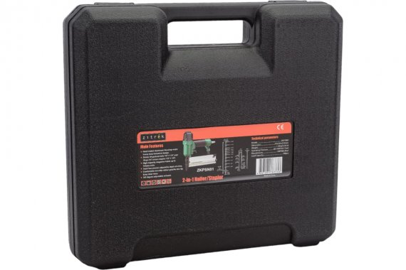 Пневматический степлер для скоб и гвоздей Zitrek ZKPSN01 018-1132 применяется в производстве и ремонте мебели, настилке полов и т.д. В качестве оснастки используются как скобы, так и гвозди.
