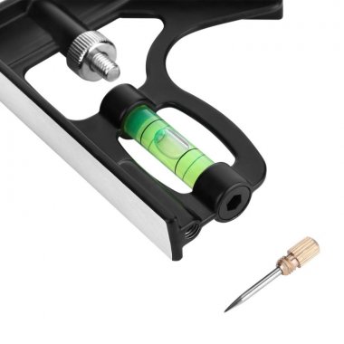 Угольник оснащен пузырьковой ампулой и чертилкой для нанесения рисок на размечаемую поверхность.