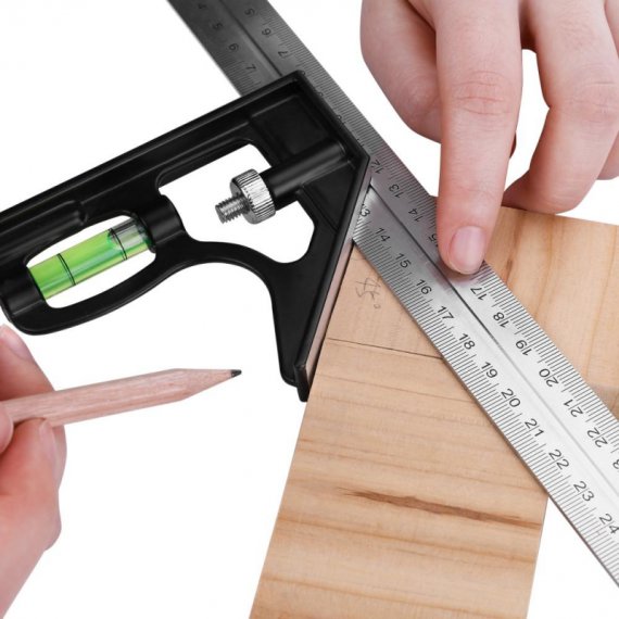 Угольник строительный 30см, 45° 90° DEKO DKM300 многофункциональный инструмент, применяемый для проверки горизонтальности конструкций, для выполнения разметки и замеров при столярных и плотницких работах.