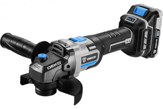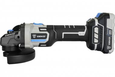Углошлифовальная машина бесщеточная DEKO DKAG20, 20В, 1*5.0Ач Частота вращения шпинделя: 0-3000/9000 об/мин 412х118х145 мм