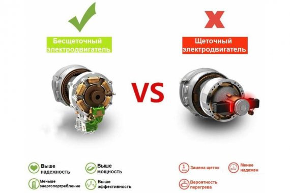 Бесщеточный двигатель отличается компактностью, высокой производительностью и долгим сроком службы.