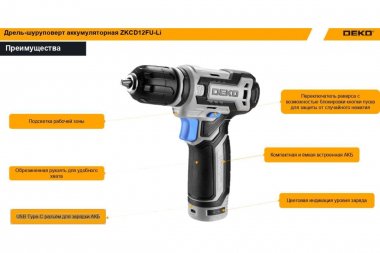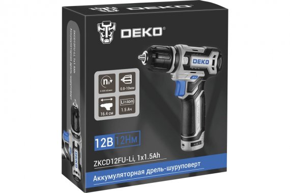 Deko 063-4141 Аккумуляторная дрель-шуруповерт ZKCD12FU-Li, 12В, 1х1.5Ач
