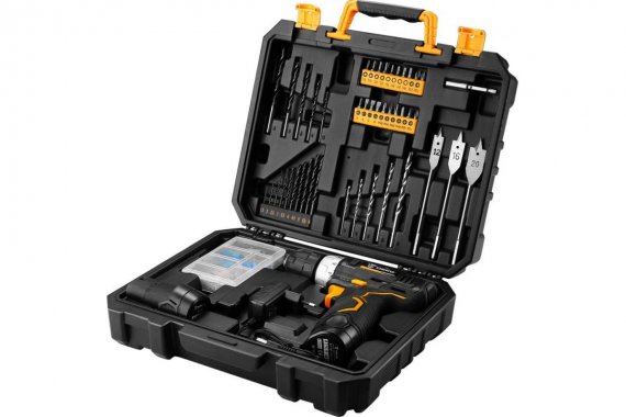 Аккумуляторная дрель-шуруповерт DEKO GCD12DU3 SET5 Li-Ion в кейсе + набор инструментов 92 шт, 12В, 2х1.5Ач, з/у 0-400/0-1500об/мин 325х290х100 мм