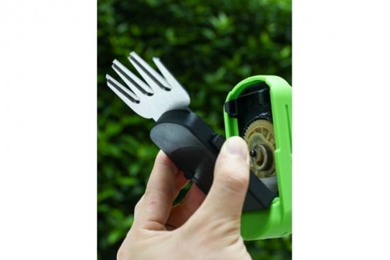 Для контроля уровня заряда предусмотрен светодиодный индикатор. Замена ножей производится без применения дополнительного инструмента. Инструмент оснащен кнопкой блокировки от случайного включения.