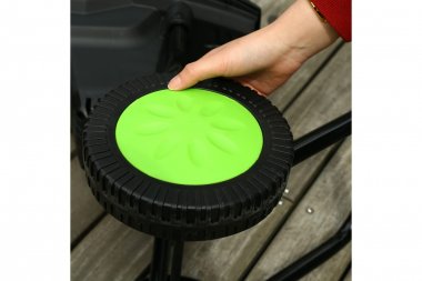 Транспортировочные колеса и ручка делают измельчитель маневренным и облегчают его перемещение по участку.