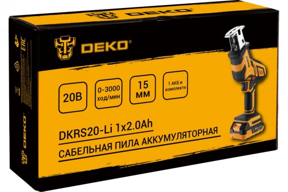 Сабельная пила аккумуляторная DEKO DKRS20-Li, 20В, 1x2.0Ач 315х80х175 мм