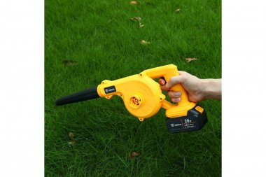 Садовая аккумуляторная воздуходувка DEKO DKBL20, 20В, 2x4.0Ач 063-4313 предназначена для уборки территории, сбора сухих листьев возле дома и в саду. Совмещает в себе функцию обдува и всасывания. Для работы в режиме всасывания к воздуходувке крепится мешок для мусора (входит в комплект). Мощный двигатель обеспечивает поток воздуха до 75 м/с на выдувание, что гарантирует быстрое выполнение работ, а малый вес и удобная рукоятка делают использование воздуходувки легким и комфортным.