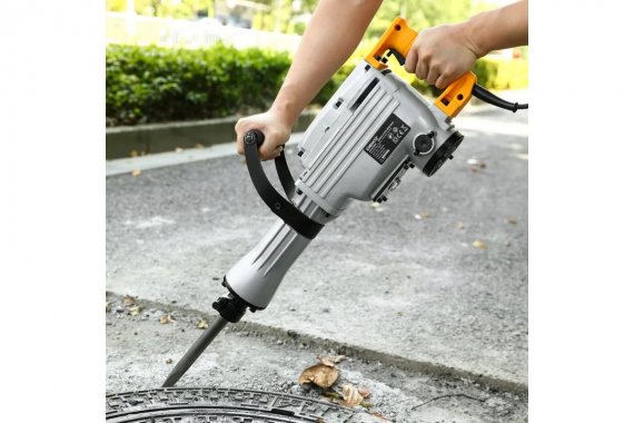 Отбойный молоток DEKO DKJH1800 используется для разрушения бетона и кирпича, удаления старых покрытий.Дополнительная D-образная рукоятка способствует уверенному удержанию инструмента в руках.