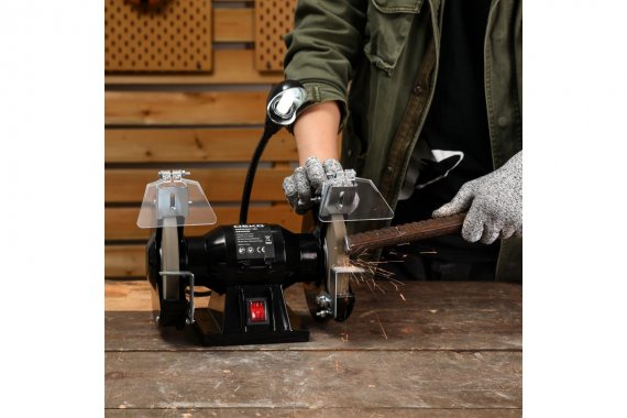 Станок заточной (точило) DEKO DKGM200-150 используется для заточки и шлифования инструмента. Модель отличается небольшими габаритами, что существенно облегчает его транспортировку. Шлифовальные диски закрыты защитными кожухами, которые обеспечивают безопасность оператора.