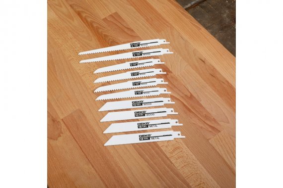 Набор пильных полотен по дереву и металлу DEKO RSB10, 10 шт - предназначен для распила изделий из дерева и металла, а также при проведении ремонтных работ по паллетам и поддонам с помощью сабельной пилы.
