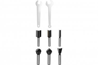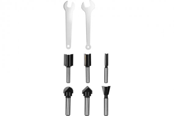 Фрезы (3 шт: пазовая прямая D6хH20мм,D12хH20мм,D16хH20мм; 1 шт: пазовая галтельная D12.7x6.35мм; 1 шт: пазовая конструкционная «ласточкин хвост» D12.7,Angle-14; 1 шт: пазовая V-образная D12.7,Angle-14) - 6 шт