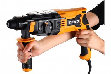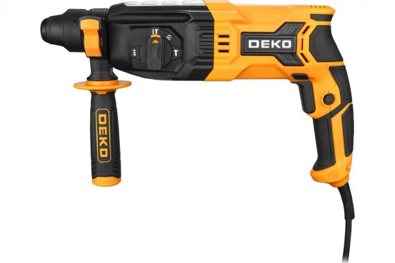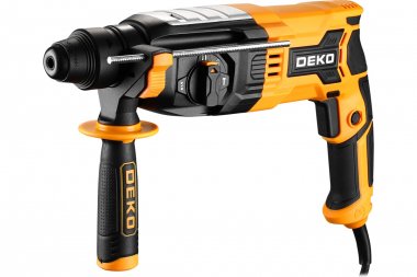 Перфоратор сетевой DEKO DKH1200W предназначен для сверления отверстия в различных материалах (дерево, бетон, кирпич, сталь и т.д.) в режимах сверления и сверления с ударом, а также ударного долбления при установке соответствующей оснастки. Переключение между режимами осуществляется при помощи тумблера сбоку на корпусе.Патрон SDS-plus обеспечивает быструю и легкую замену оснастки. Дополнительная рукоять способствует уверенному удержанию инструмента в руках, ее можно вращать на 360 градусов для выбора оптимального положения. Наличие кейса решает вопрос хранения и транспортировки перфоратора. Регулировка рабочей скорости осуществляется в пределах 0 – 1150 об/мин путем изменения силы нажатия на пусковой курок выключателя.