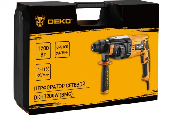 Перфоратор сетевой DEKO DKH1200W в кейсе, 1200 Вт 3.2 Дж 91дБ 425х110х290 мм