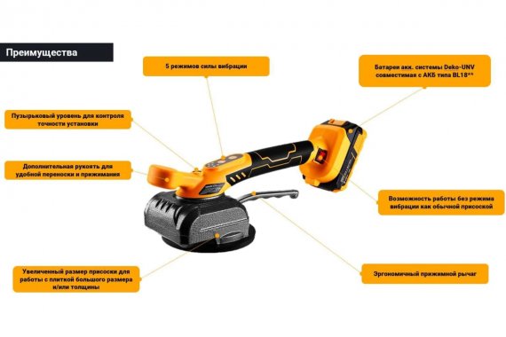 Deko 063-4377 Виброприсоска аккумуляторная для укладки плитки DKTT20, 20В, 2x2.0Ач, в кейсе