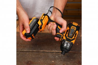 Винтоверт аккумуляторный ударный DEKO DKIS20-Li предназначен для вкручивания/выкручивания длинномерных крепежных элементов в деревянные материалы при строительстве. Патрон данной модели представляет собой внутренний шестигранник 1/4". Предусмотрена функция тормоза, обеспечивающая эффективную работу при серийных заворачиваниях. Бесключевой патрон отвечает за быструю смену рабочей насадки. Li-lon аккумулятор обеспечивает бесперебойную работу. Наличие подсветки облегчает работу в условиях недостаточного освещения.