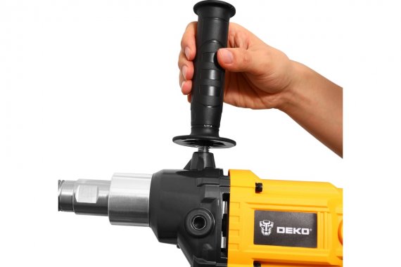 Дрель алмазного сверления DEKO DDM-1600 предназначена для сверления отверстий в бетоне, железобетоне, искусственном и натуральном камне и каменной кладке с использованием алмазных сверлильных коронок с подачей воды. Мощный двигатель и высокий крутящий момент гарантируют эффективность сверления. Основная и вспомогательная рукоятки удобны и эргономичны, вспомогательную рукоятку можно зафиксировать в 3-х положениях. Инструмент оснащен функцией защиты от перегрева и механической защитной муфтой (защита от обратного удара).