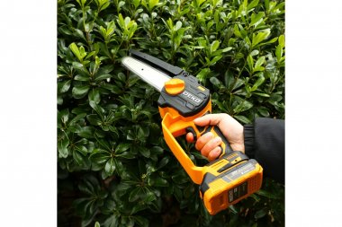 Пила цепная аккумуляторная DEKO DKCHS 20-6, 20В, 2x2.0Ач в кейсе предназначена для пропилов в древесине и пластмассе. Также пила применяется при работе в мастерской или в саду для распиливания различных материалов. Инструмент работает от литий-ионного аккумулятора.