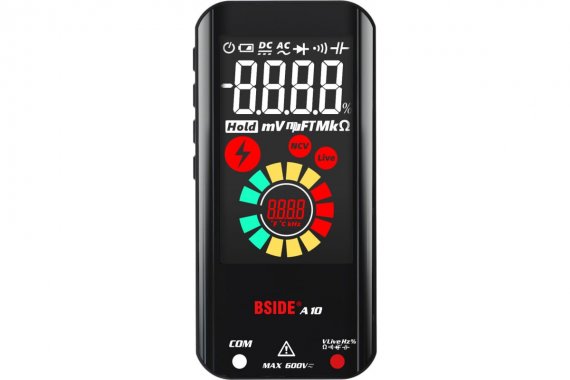 Мини-мультиметр цифровой с цветным дисплеем и встроенным аккумулятором BSIDE A10 предназначен для проведения измерений параметров электрической сети (ток, сопротивление). Прибор оснащен цветным ЖК-дисплеем; в комплект поставки входит чехол для хранения и адаптер для зарядки.
