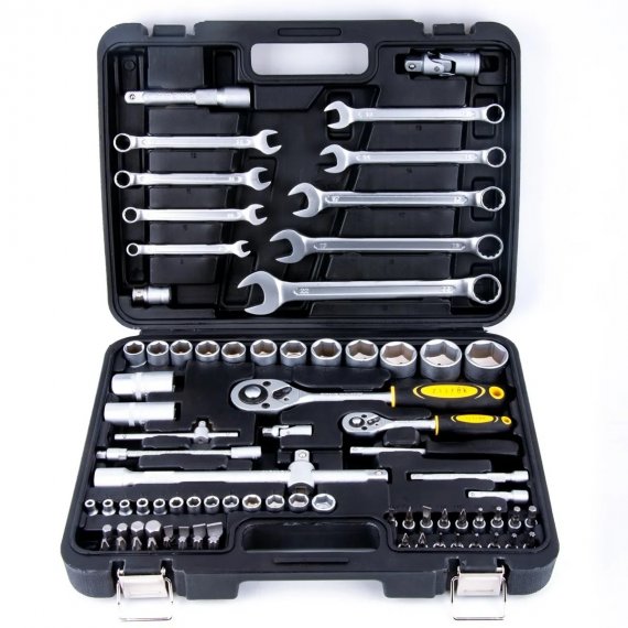 Всё необходимое - набор включает в себя множество самых популярных насадок, трещотки, гаечные ключи, шестигранный ключ, биты, универсальный шарнир и т.д.