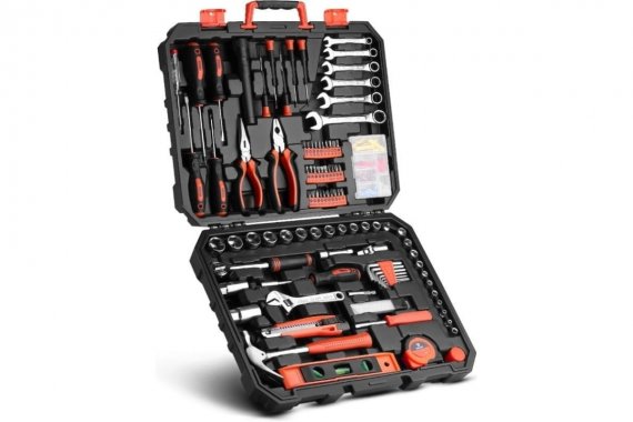 Набор инструментов для дома DEKO DKMT208 065-0222 включает в состав оборудование, выполненное из высокопрочной стали, которая прошла дополнительную закалку и специальную обработку. Это защищает инструмент от коррозии, а также делает его более устойчив к любым физическим деформациям.