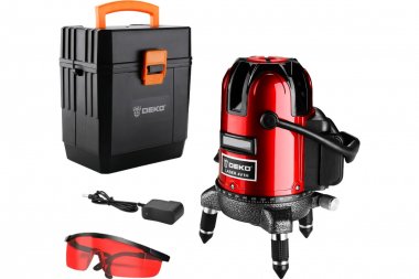 Уровень лазерный самовыравнивающийся DEKO LL57 SET 6 (в кейсе, с аккумулятором) Li-lon 5/8дюйм IP54 -10+45°С 200х160х230 мм кейс/чемодан