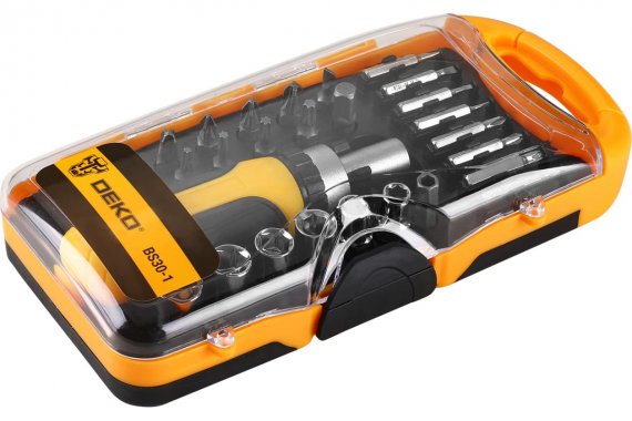 Отвертка с набором бит и торцевых головок DEKO BS30-1 (30 предметов) Min размер головки 5мм Max размер головки 10мм 6-гранные 1/4дюйма кейс пластик 190х33х100 мм