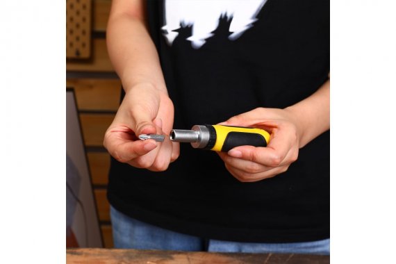 Отвертка с набором бит и торцевых головок DEKO BS30-1 065-0503 включает в состав оборудование, выполненное из высокопрочной стали, которая прошла дополнительную закалку и специальную обработку. Это защищает инструмент от коррозии, а также делает его более устойчив к любым физическим деформациям.