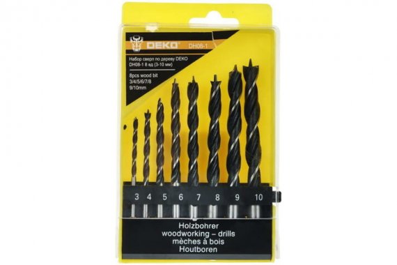 Набор сверл по дереву DEKO DH08-1 8 ед (3-10 мм) Материал обработки дерево Тип хвостовика цилиндрический