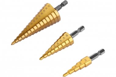 Набор ступенчатых сверл с шестигранным хвостовиком DEKO SD03, 12-32 мм, 3 шт металл шестигранный (1/4HEX - E) HSS-TIN