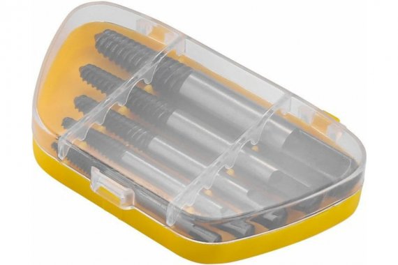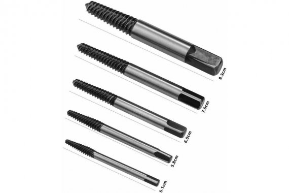 В наборе 5 экстракторов разных размеров подходящих к большинству крепежных элементов