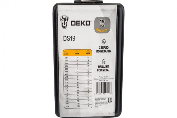 Технические характеристики набора сверл по металлу DEKO 065-0543