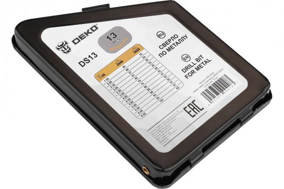 Набор сверл по металлу DEKO DS13, 1,5-6,5 мм, 13 шт металл Тип хвостовика цилиндрический Материал сверла HSS кейс/ чемодан