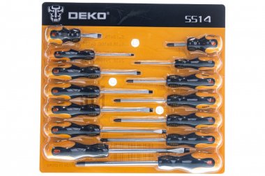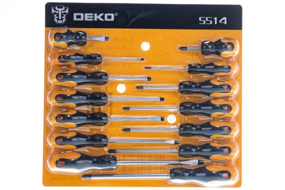 Набор отверток DEKO SS14 (14 предметов) Тип наконечника Phillips(PH) Slotted(SL) Материал рукояти 2-х компонентный CrV Длина стержня 100мм
