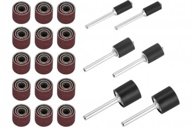 Набор шлифовальных барабанов RT51DEKO 065-0676 предназначен шлифования, выравнивания, полирования стали, нержавеющей стали, цветных металлов, серого и черного чугуна, пластиков, дерева гравировальной бормашиной (гравером).
