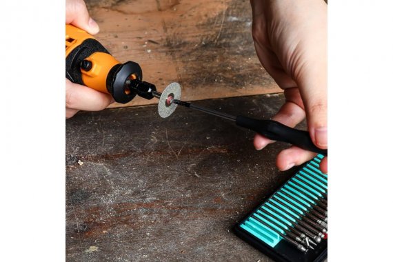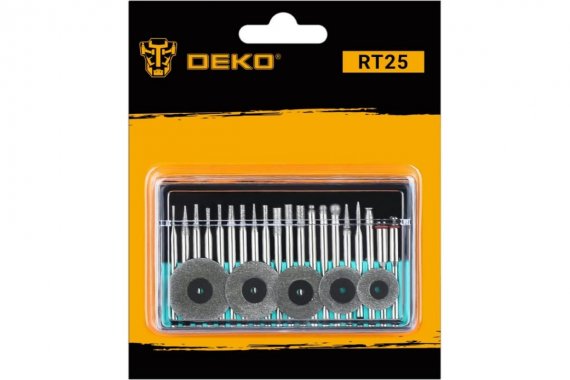 Набор RT25 DEKO 065-0681 предназначен для обработки и резки изделий из металла, бетона, древесины, керамики, мрамора с помощью гравировальной машинки.