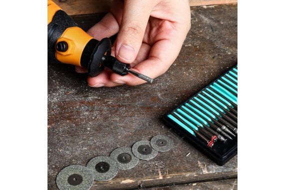 Набор шарошек и отрезных дисков с алмазным напылением для гравера + держатели DEKO RT25 (25 предметов) Max размер хвостовика 3мм Обрабатываемые материалы металл, бетон, древесина, керамика, мрамор