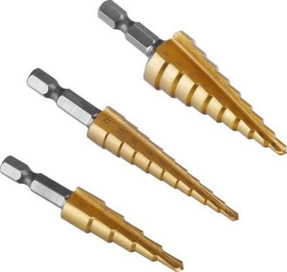 Набор сверл ступенчатых DH20 3 шт, 3-12, 4-12, 4-20 мм DEKO 065-0688 подходят для сверления отверстий в изделиях из цветных металлов, пластика и стальных листах.