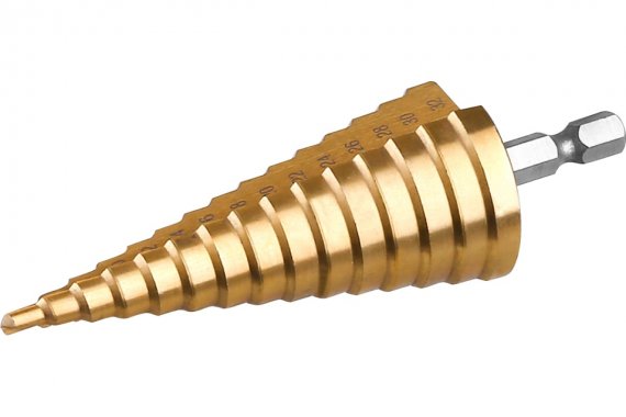 Cверло ступенчатое DEKO DH24, 4-32 мм, 1 шт Тип хвостовика шестигранный (1/4HEX - E) металл HSS-TIN
